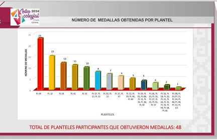 Con un total de 23 medallas, el Plantel 04 El Tule, se colocó en el primer sitio, luego sigue el Plantel 32 Cuilápam con 15 medallas y luego el plantel 01 Pueblo Nuevo con 12, por citar sólo a los tres primeros sitios.