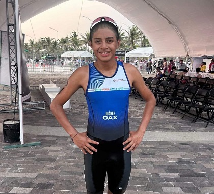 Oaxaca, Oaxaca, Lunes 27 de Mayo, 2024 (Fuente: Comunicado).- La triatleta Constanza Rueda Martínez obtuvo la presea plateada en la categoría de los 16 – 17 años durante su prueba en los Nacionales CONADE 2024 que se realizan en Ciudad de Carmen, Campeche.