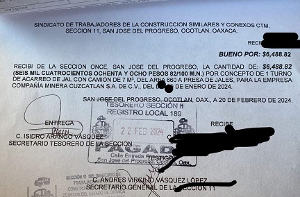 Empresa AVIMP defrauda a transportistas de Minera Cuzcatlán