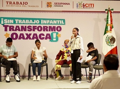 Oaxaca, Oaxaca, Miércoles 12 de Junio, 2024 (Fuente: Comunicado).- En el marco del Día Mundial Contra el Trabajo Infantil, que se conmemora cada 12 de junio, la Secretaría del Trabajo (SETRAO) realizó el Encuentro Intergeneracional “Sin Trabajo Infantil Transformo Oaxaca”, a fin de reafirmar su compromiso y responsabilidad con la niñez oaxaqueña.