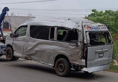 Volcadura de urvan deja nueve lesionados