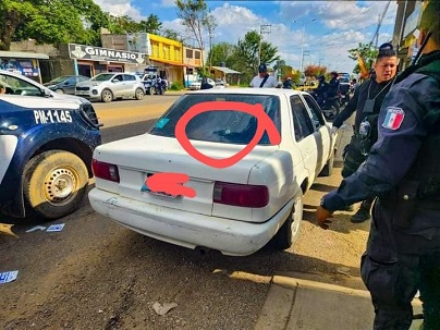 Al lugar llegó otra unidad, quienes reportaron que iniciaban una persecución de un vehículo, tipo Tsuru color blanco sobre dicho boulevard, pidiendo apoyo de una motopatrulla.