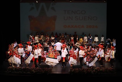 Oaxaca, Oaxaca, Domingo 07 de Julio, 2024 (Fuente: Comunicado).- El Teatro Macedonio Alcalá fue el escenario para que niñas, niños y jóvenes integrantes del programa Semilleros Creativos de la entidad, mostraran la diversidad de expresiones y manifestaciones culturales y artísticas de su comunidad, como parte del Festival Tengo un Sueño 2024 “Herencia viva en Oaxaca”.