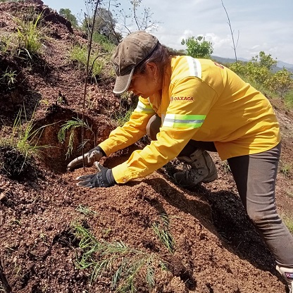 También se sumaron personal de tres brigadas de combatientes con sede en Tlalixtac de Cabrera, El Tequio y Corral de Piedra, quienes sembraron los árboles donados por los programas Reforesta Oaxaca de la COESFO y Sembrando Vida del Gobierno de México.