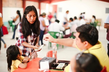 En las sedes habilitadas para este proceso en Tehuantepec, Juchitán de Zaragoza y Matías Romero, así como en San Pedro Pochutla, Puerto Escondido y Pinotepa Nacional, en el primer día de atención, de manera ordenada se realizó la entrega del recurso consistente en 405 pesos en efectivo, cuyo objetivo es apoyar la economía familiar y contribuir al mejoramiento de las condiciones escolares de las y los alumnos de nivel básico.