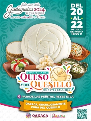 Oaxaca, Oaxaca, Martes 16 de Julio, 2024 (Fuente: Comunicado).- El gobierno del estado, a través de la Secretaría de Desarrollo Económico (SEDECO), invita a la Expo Feria del Queso y del Quesillo 2024 que se llevará a cabo del 20 al 22 de julio en el municipio de Reyes, del distrito de Etla, región Valles Centrales de Oaxaca.