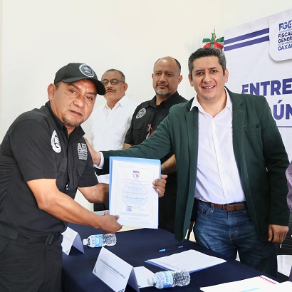 Oaxaca, Oaxaca, Martes 16 de Julio, 2024 (Fuente: Comunicado).- Al realizar la entrega de los Certificados Únicos Policiales, el Fiscal General del Estado de Oaxaca, Bernardo Rodríguez Alamilla, resaltó que, el proceso de reingeniería institucional que se lleva a cabo en el organismo procurador de justicia tiene el objetivo de transformar el rostro de la institución, por ello, se ha puesto como eje estratégico la capacitación que permita a las y los elementos de la Agencia Estatal de Investigaciones alcanzar la certificación.