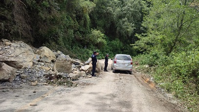 Exhorta policía vial a transitar con precaución en carreteras ante derrumbes y afectaciones