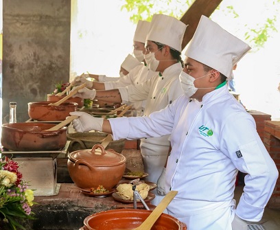 En la festividad que se realiza este 26 de julio en el Centro Gastronómico de Oaxaca (CGO) -en el marco de las actividades de Julio, Mes de la Guelaguetza- las y los alumnos apoyan a cocineros y cocineras tradicionales, así como a chefs de diversos municipios y restaurantes con la preparación de platillos que forman parte del patrimonio cultural del estado.