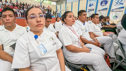 En el Instituto de Estudios Superiores del Istmo de Tehuantepec (IESIT), en representación del jefe jurisdiccional Hebert Vidal Sánchez, el coordinador de Atención Médica, Luis López Villalobos, convocó a las juventudes, que se integrarán a la red de Servicios de Salud IMSS-Bienestar, a conducirse en todo momento, de manera responsable, con empatía, vocación de servicio y buen trato a cada paciente.