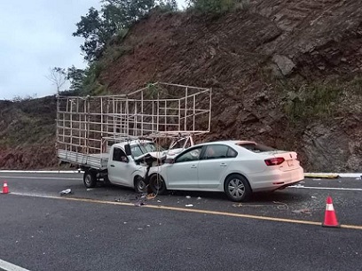 Una camioneta marca Nissan placas de circulación RX9369A se impactó con un automóvil marca Volkswagen con placas de circulación TLV3767, a la altura del kilómetro 20, lo que originó el fallecimiento de al menos dos personas; además, tres personas lesionadas.