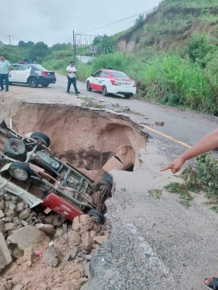 En tanto, la Policía Vial Estatal recomienda a la ciudadanía conducir con precaución en la Carretera Federal 125 a la altura del kilómetro 49+800, en el paraje Curva del Tejón de la Heroica Ciudad de Tlaxiaco, debido a socavones que se encuentran en la zona.