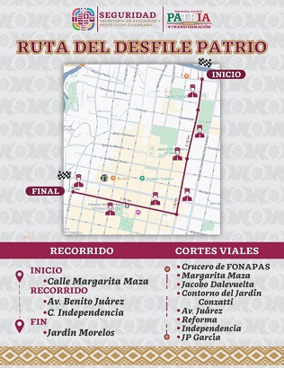 Para resguardar la integridad de las personas que participen, la Policía Vial realizará cortes viales desde el crucero de Fonapas, y las calles Margarita Maza, Jacobo Dalevuelta, el contorno del jardín Conzzati, avenida Juárez, calle Reforma, avenida Independencia y J.P. García.