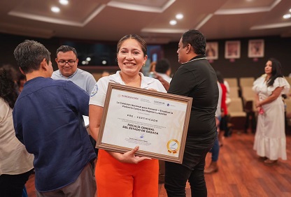 Así lo dio a conocer la Coordinadora General del Proceso de Certificación de Espacio Libre de Violencia de Género, Ivanova María Eugenia Arreguín González, durante la Entrega de Pre-Certificados de Espacios Libres de Violencia de Género (ELVG) a seis centros de trabajo del Gobierno del Estado.