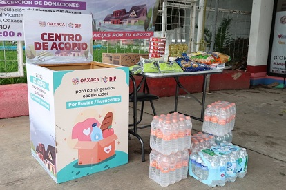 Por ello, el Sistema DIF Oaxaca, así como las y los Delegados de Paz habilitaron centros de acopio para recolectar víveres.