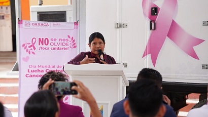 En la explanada de este municipio, el funcionario dijo que, para el Gobernador del Estado, Salomón Jara Cruz su prioridad es la de acercar a todas las oaxaqueñas estos servicios que permiten estar un paso adelante del cáncer de mama, ya que la única forma de poderle dar batalla a la enfermedad es con acciones de detección temprana.