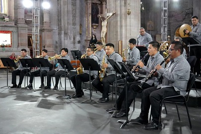 El Ensamble Banda Regional Princesa Donashii realizó un concierto en el Templo de la Compañía de Jesús oratorio de San Felipe Neri, en Guanajuato, para recorrer la historia musical del Istmo de Tehuantepec.