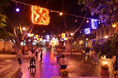 Oaxaca, Oaxaca, Jueves 24 de Octubre, 2024 (Fuente: Comunicado).- Para el disfrute de la población oaxaqueña, así como de visitantes durante la temporada del Día de Muertos, la Secretaría de Administración colocó luminarias alusivas a estas fechas en el Zócalo de la capital oaxaqueña.