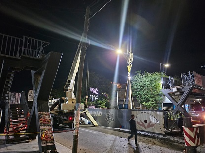 Finalmente, durante la noche de este lunes bajaron la estructura dañada del puente peatonal del mercado Las Flores; tuvieron que cortar para retirarla, según informó la dirección de la Secretaría Infraestructura, Comunicaciones y Transportes (SICT) en Oaxaca.