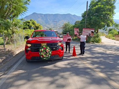 Elementos de esta corporación realizan acciones de abanderamiento, proximidad social y ayuda ciudadana para resguardar y dar seguridad vial a personas peregrinas que acuden como cada año al Pueblo Mágico de Santa Catarina Juquila.
