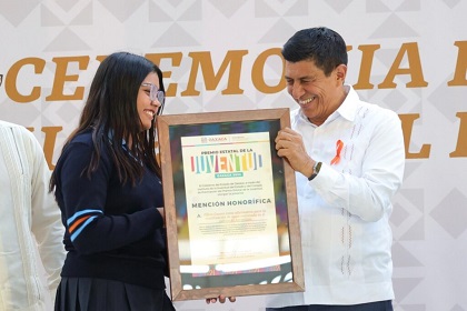 En una emotiva ceremonia realizada en el recién inaugurado Parque Primavera Oaxaqueña, a la que asistió la Presidenta Honoraria del Sistema para el Desarrollo Integral de la Familia (DIF) Oaxaca, Irma Bolaños Quijano, se reconoció a menores de 25 años cuya dedicación al trabajo o estudio inspiran entusiasmo y admiración entre sus contemporáneos, siendo ejemplos de lucha, pasión, determinación, superación personal y progreso comunitario.