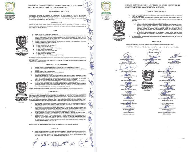 Oaxaca, Oaxaca, Sábado 30 de Noviembre, 2024 (Fuente: Agencias).- Este viernes dio inicio formal el proceso electoral para renovar la dirigencia sindical del STPEIDCEO 2025-2028, con la publicación de la convocatoria para la integración y registro de las plantillas, por parte de la Comisión Electoral nombrada por el pleno de delegados.
