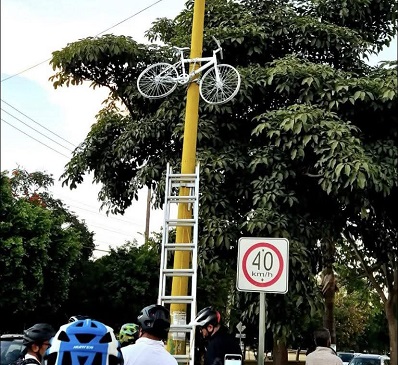 *Colocan una Bici Blanca en memoria del adulto mayor atropellado cuando trabajaba repartiendo garrafones de agua en su triciclo