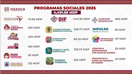 Oaxaca, Oaxaca, Miércoles 08 de Enero, 2025 (Fuente: Comunicado).- El gobernador Salomón Jara Cruz anunció un presupuesto histórico de 4 mil 491 millones de pesos, para la puesta en marcha de nueve programas sociales que atenderán el bienestar de los grupos prioritarios de la entidad, que incluye el nuevo esquema de apoyo destinado a mujeres a través de créditos a la palabra.