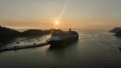 Bahías de Huatulco, Pochutla, Oaxaca, Jueves 09 de Enero, 2025 (Fuente: Comunicado).- La Secretaría de Turismo del Estado (SECTUR Oaxaca) anunció la llegada del crucero Zaandam, el primero del año procedente de Puerto Vallarta, Jalisco, con mil 367 personas pasajeras en tránsito y 570 tripulantes, que dejará una derrama económica estimada de un millón 785 mil 255 pesos en beneficio de la población de la zona, prestadores de servicios y comerciantes.