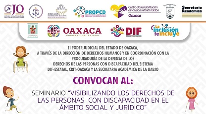 Oaxaca, Oaxaca, Miércoles 05 de Febrero, 2025 (Fuente: Comunicado).- Como parte de la campaña La inclusión te incluye, el Sistema para el Desarrollo Integral de la Familia (DIF) Oaxaca invita a inscribirse en el seminario: “Visibilizando los derechos de las personas con discapacidad en el ámbito social y jurídico”, que se llevará a cabo los días lunes y miércoles a partir del 17 de febrero, en un horario de 10:00 a 12:00 horas.