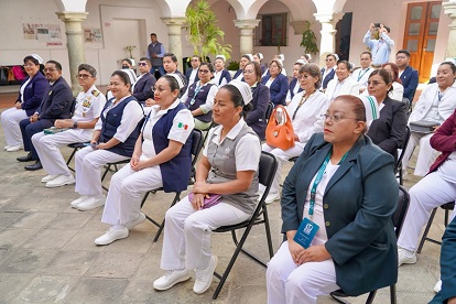 Así como a la coordinadora delegacional de Enfermería del Instituto Mexicano del Seguro Social (IMSS), Yolanda Irma Martínez Luna; la encargada de la Coordinación Delegacional de Enfermería del Instituto de Seguridad y Servicios Sociales para Trabajadores del Estado (ISSSTE), Otilia Juárez Cortés; la supervisora de Enfermería del Hospital General de Petróleos Mexicanos (Pemex), Lolita Martínez Miguel, y el jefe de Enfermería de la Casa Hogar “Los Tamayo” del del Sistema Nacional para el Desarrollo Integral de la Familia (SNDIF) en Oaxaca, Marcos Gómez Cruz.