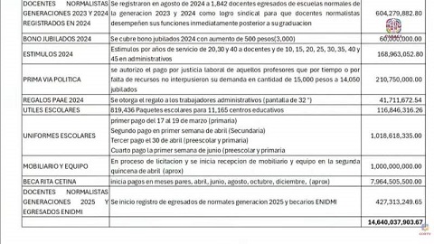 Estos números ponen en evidencia el altísimo gasto en dádivas y beneficios a maestros y normalistas, lo que podría explicar la constante movilización y protestas del sector en la entidad. A pesar de los señalamientos, ni Jara ni Montero han explicado a profundidad la necesidad de estas erogaciones ni los mecanismos de control para evitar irregularidades.