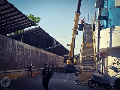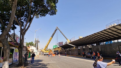 La noche del pasado lunes había comenzado la demolición del puente amarillo, pero fue hasta este viernes que se trabajo con maquinaria pesada y grúas de gran tamaño para quitarlo por completo.