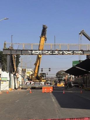 *El puente peatonal, mejor conocido como “El Puente Amarillo”, ubicado frente a la Central de Abasto, en la capital de Oaxaca, dijo adiós este viernes