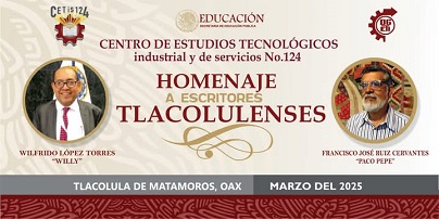 Tlacolula de Matamoros, Oaxaca, Miércoles 19 de Marzo, 2025 (Fuente: Comunicado).- Directivos y comunidad estudiantil del Centro de Estudios Tecnológicos, Industrial y de Servicios 124 (CETIs) de esta localidad ubicada en la región Valles Centrales de Oaxaca, reconocieron la obra y trayectoria del periodista y poeta Wilfrido López Torres, fallecido el año pasado, y del maestro e historiador Francisco José Ruiz Cervantes.
