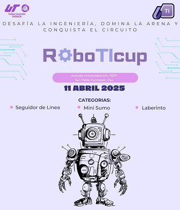 San Pablo Huixtepec, Zimatlán, Oaxaca, Viernes 04 de Abril, 2025 (Fuente: Comunicado).- La Universidad Tecnológica de los Valles Centrales de Oaxaca (UTVCO) celebrará el próximo 11 de abril la RoboTiCup 2025, torneo de robótica que reúne lo mejor de la tecnología e innovación de la institución.
