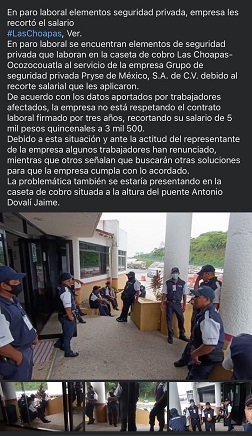 “Grupo de seguridad privada PRYSE de México. Solicitamos Guardias de Seguridad, contratación inmediata $5,000 quincenales (Zona Centro) $4,500 (otros municipios) quienes lleguen y se presenten hoy antes de la 1 pm en su centro de trabajo, se les dará un bono de $500”, se lee en uno de los anuncios que promocionan en Oaxaca.