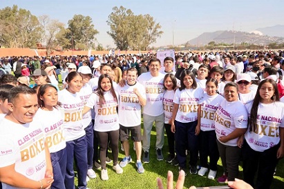 El Mandatario estatal en compañía del pugilista Carlos Roberto Cuadras Quiroa “El Príncipe” refirió que, al sumarse a esta iniciativa del Gobierno Federal, se combaten las adicciones desde sus causas en beneficio de las juventudes, ya que el boxeo inspira y conduce al camino de la disciplina, salud y éxito.