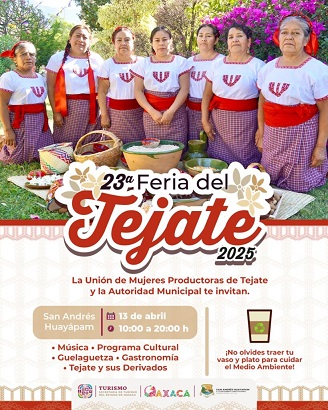 Oaxaca, Oaxaca, Sábado 12 de Abril, 2025 (Fuente: Comunicado).- La Secretaría de Turismo (SECTUR Oaxaca) invita a población y visitantes a disfrutar de la XXIII edición de la Feria del Tejate de San Andrés Huayápam, este domingo 13 de abril a partir de las 10:00 horas.