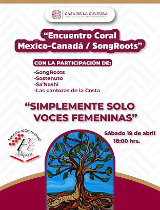 Este encuentro musical contará con la participación de 30 mujeres de Canadá, dos ensambles femeninos de la Ciudad de México, el Coro Femenino de Mazunte, y el Coro Filarmónico del Estado de Oaxaca.