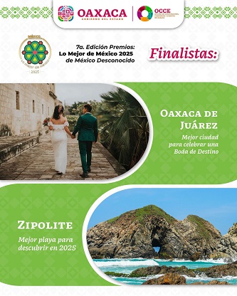 Oaxaca, Oaxaca, Jueves 24 de Abril, 2025 (Fuente: Comunicado).- La ciudad de Oaxaca y la playa Zipolite han sido seleccionadas como finalistas en la séptima edición de los premios “Lo Mejor de México 2025”, organizados por la revista especializada México Desconocido, que distingue a los destinos y experiencias turísticas más sobresalientes del país.