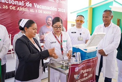 San Miguel Ejutla, Oaxaca, Lunes 28 de Abril, 2025 (Fuente: Comunicado).- Bajo el lema “Vacunarse es Salud”, Servicios de Salud de Oaxaca (SSO) puso en marcha la Primera Semana Nacional de Vacunación 2025, que contempla la aplicación de más de 68 mil 800 biológicos en el sector Salud de forma gratuita del 26 de abril al 3 de mayo, correspondientes al esquema básico de protección para las familias.