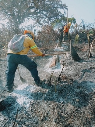 En coordinación con las y los pobladores, se llevan a cabo labores de vigilancia en los distintos puntos que se encuentran controlados, además, se realiza la apertura de zanjas bordo en puntos específicos para detener cualquier material rodante que pueda encender un foco secundario, evitando así la reactivación del incidente.