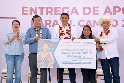El gobierno de la Primavera Oaxaqueña provee con esta estrategia a las y los productores de: paquetes de semillas mejoradas no transgénicas, bioinsumos y fertilizantes agrícolas, silos metálicos para conservar el excedente de granos cosechados y, específicamente a mujeres otorga paquetes de gallinas doble propósito.