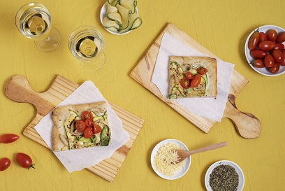 Preparación: Unta una capa generosa de hummus sobre la focaccia. Agrega las tiras de vegetales asados y decora con hojas frescas y un chorrito de aceite de oliva.