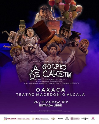 Oaxaca, Oaxaca, Jueves 22 de Mayo, 2025 (Fuente: Comunicado).- La Secretaría de las Culturas y Artes de Oaxaca (SECULTA) invita a las y los oaxaqueños que gusten del teatro, a las funciones gratuitas de la puesta en escena “A golpe de calcetín”, los días 24 y 25 de mayo.