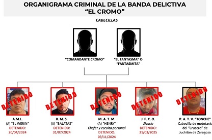 Derivado de las investigaciones realizadas mediante un estudio de análisis y contexto sobre las actividades de P.A.T.V., alias “El Tonche”, la Fiscalía de Oaxaca estableció que el imputado es considerado como un objetivo prioritario en el Istmo de Tehuantepec, pues estaría vinculado con diversos delitos de alto impacto, además que sería parte de la segunda línea de mando dentro de la estructura criminal de la banda del “Comandante Cromo”, que opera en el Istmo, célula delictiva de la que se ha logrado -en el último año- la detención de cinco de los líderes operativos, entre ellos: A.M.L., alias “El Werín” (Detenido el 24/04/2024); R.M.S., alias “Balatas” (Detenido el 31/07/20249; M.A.T.M., alias “Henry”, que era chofer y escolta personal de “Comandante Cromo” (Detenido el 03/11/2024); y J.F.C.O., probable Sicario de esta organización (detenido 31/03/2025).
