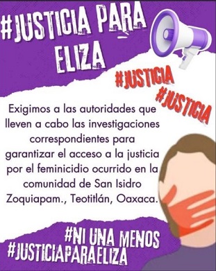 “Nos unimos a la exigencia de la familia de Eliza, madre, hermana, prima, amiga, a quien le fue arrebatada la vida de manera más cobarde. Estamos hartas de tanta violencia y sumándole al dolor. Estamos hartas de la poca empatía de las autoridades; exigimos al presidente municipal Mucio Carrera Hernández, a los diputados de la región y a la Fiscalía General del Estado que tomen cartas en el asunto”, denunció la asociación ‘Mujeres mazatecas que miran a favor de la tierra’.
