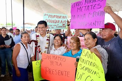 “Hoy les decimos con el corazón en la mano que no están solas ni solos; este Gobierno de la Primavera Oaxaqueña es de ustedes y la transformación es con ustedes. Su trabajo, lucha y esperanza están sembrando una nueva historia para Oaxaca”, puntualizó.