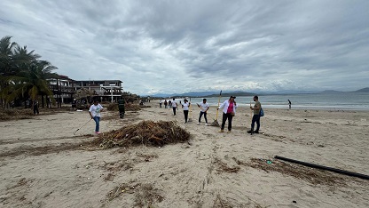Oaxaca, Oaxaca, Lunes 23 de Junio, 2025 (Fuente: Comunicado).- La Secretaría de Turismo (SECTUR Oaxaca) y Ángeles Verdes de la dependencia federal homóloga, realizaron trabajos de limpieza y entregaron dotaciones alimentarias a las familias de Chacahua Isla, en el municipio Villa de Tututepec de Melchor Ocampo; una de las zonas más afectadas por el impacto del huracán Erick.